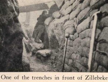 During this stay in La Clytte, the battalion furnished three 500-strong fatigue parties for the “P” trenches. There were five killed and four wounded doing this work.”