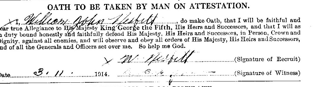 A few days later on November 3, Bill officially joined the 21st Battalion of the CEF in Kingston when he signed his Attestation Paper showing he was 24 years and 6 months of age and stood 5’ 9 1/2.”