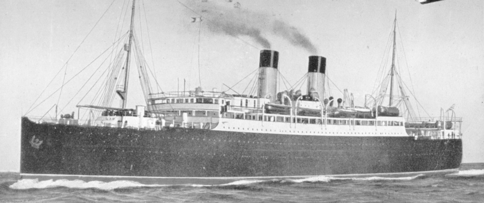 “We had on board several hospital units, including about 150 Nursing Sisters, in their natty blue uniforms. They were immediately nicknamed the “Bluebirds.” Many’s the man who has since had cause to bless those same bluebirds in the hospitals of France and England. We ran into ice at the mouth of the St. Lawrence and for two days were constantly in sight of bergs. It was a beautiful spectacle but I’m afraid we did not properly appreciate it. We remembered the Titanic. Then we got word by wireless that the Lusitania had been torpedoed. Personally I didn’t believe it. I began to believe it the next day when were we ordered to go down in the hold and get our guns and mount them on the deck. Two were mounted on the forward deck, two on the flying bridge and two on the aft bridge. I am not sure what we were expected to do against a submarine with machine guns. I was with the forward guns and, as we had several days of pretty rough weather, it was a wet job. We had no convoying war-ships until, one night about nine o’clock, several dark slim shadows came slipping out of the blackness and established themselves in front, on both flanks and behind us. The Metagama (below) was running without lights and the destroyers were also perfectly dark and we could barely discern their outlines as they glided silently along. When the rest of the battalion (who were not allowed on deck) heard the news about the British destroyers, the grapevine started overtime, with guys guessing which port we were headed for.”