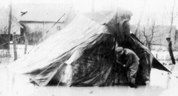 “On Mar. 24 at Bois des Alleux (along with the 21st Battalion), we were shelled by long-range guns, one man being killed and another wounded. With no shelter from the shelling all we could do was disperse in the open fields. It was decided to vacate the huts the next day and we moved back about a mile and established ourselves at Yukon Camp, where there was practically no accommodation. Improvised shelters were quickly erected giving us some cover from the cold and drenching rain.”