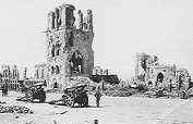 “On October 21, they marched back to Caestre and boarded a train to the ruined city of Ypres (left). Many of the men had never been in Flanders; for them it was a thrilling experience to be amidst the wreckage of the town, the very name of which was synonymous with all that was terrifying.”