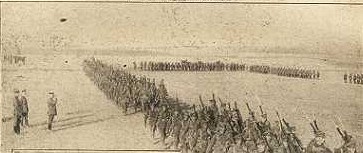 Sam Hughes inspects a line of marching Canadian troops in the latter part of September 1916.
