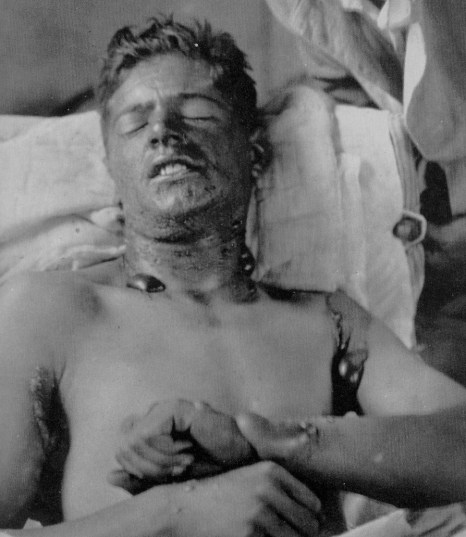 An unidentified soldier suffers from the effects of mustard gas.