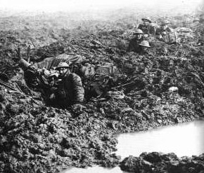 There were several factors that had brought the Canadians to this state. Before the battle started they were not aware that there was an unusually heavy concentration of German artillery against them and that it was positioned in such a way as to be able to inflict maximum damage. The whole area was quickly laid waste, including support and communication trenches. This created the need to move troops further behind the front lines. However, when it became necessary to move them forward again, they had to struggle through virtually impassable mud that was often up to their armpits. This same mud made creating new or repairing old trenches impossible and often the only shelter was a shell hole.