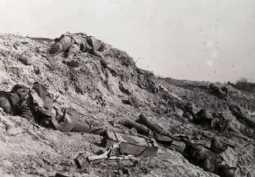 “It occurred to another soldier that the scene of the attack was nothing like the popular conception of a line of shoulders racing forward and bayoneting the enemy. What he saw instead were clumps of men, scattered over the entire front, toiling slowly up the ridge. He passed one man lying in a deep shell hole crying ‘Water! Water! The top of his head had been blown off, exposing his brains.”